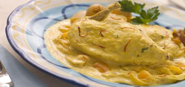 Chicken cooked with mango pulp and a touch of cream and cashew nuts.