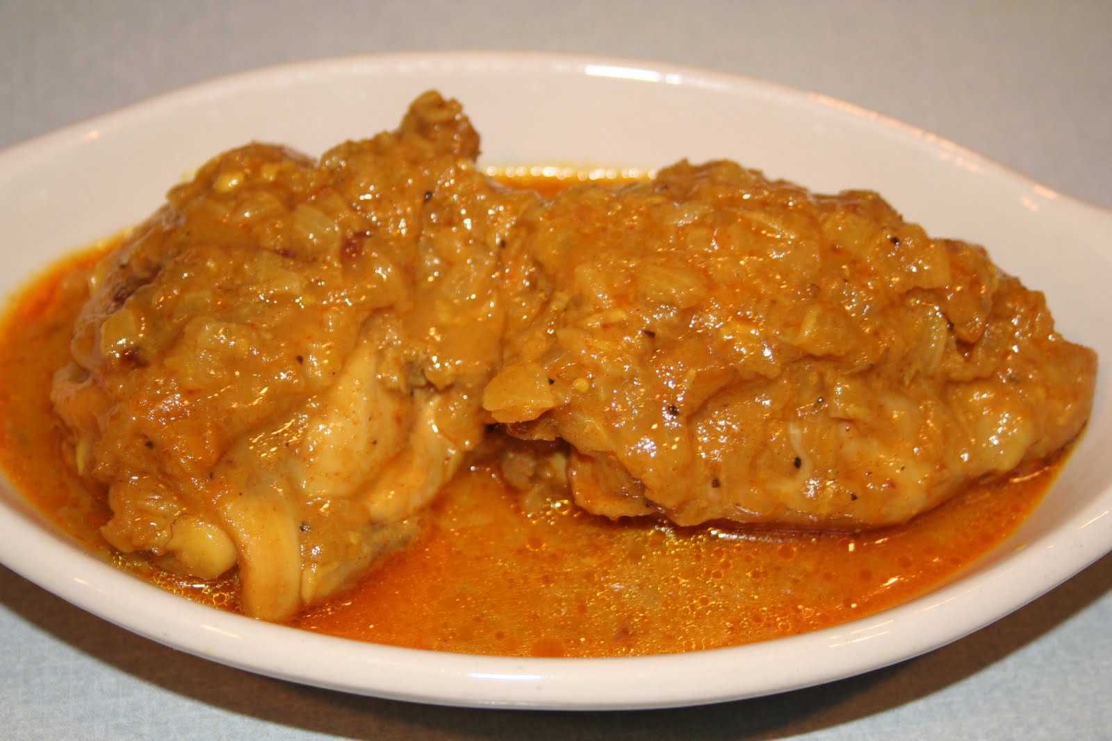 Chicken cooked with mango pulp and a touch of cream and cashew nuts.
