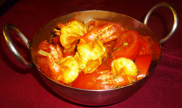Prawns cooked with onions, tomato, spring onion and garnished with coriander.
